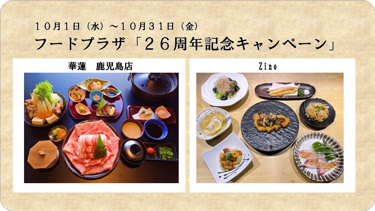 華蓮 鹿児島店とZinoでは、令和7年10月1日(水)~10月31日(金)の期間、26周年記念キャンペーンを実施しています。
