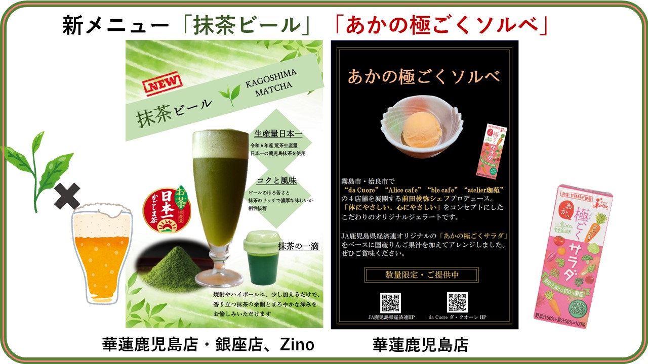 ■実施店舗:【抹茶ビール】 華蓮 鹿児島店・銀座店、Zino(ジーノ)