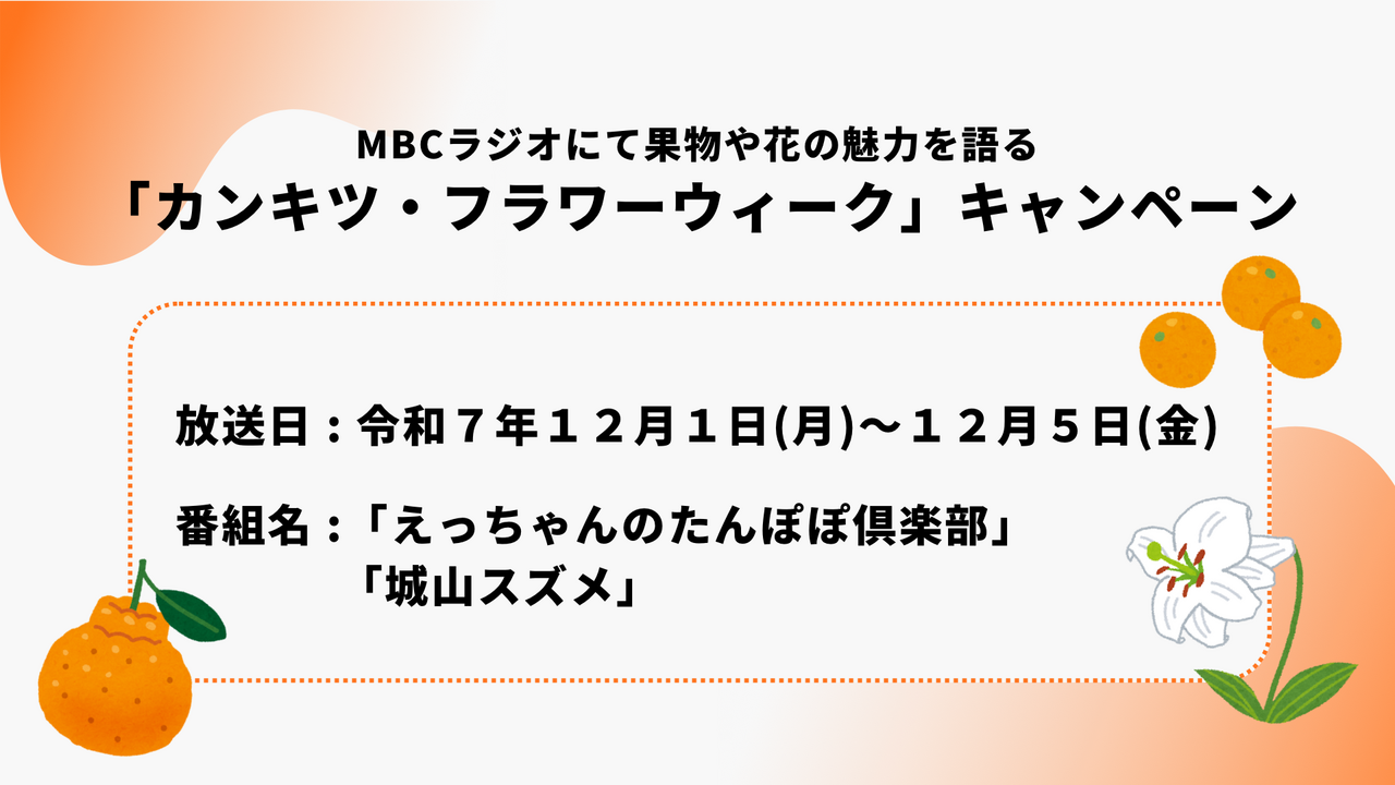 【12月1日(月)~12月5日(金)】MBCラジオにて「カンキツ・フラワーウィーク」キャンペーン実施