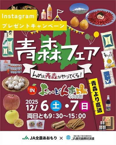 12月6日(土)・7日(日)に開催される「青森フェアinおいどん市場与次郎館」を記念して、Instagramプレゼントキャンペーンを実施いたします。