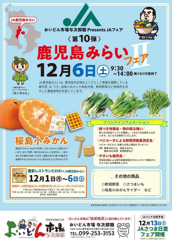 今回は、12月6日(土)開催の『JA鹿児島みらいフェア』です。
