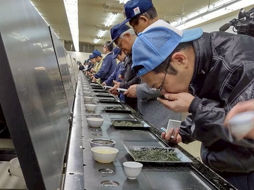 上場された荒茶は、県内各産地で保管されている一番茶から二番茶、点数92点・数量7.4トンで、県内買受人21社により取引されました。