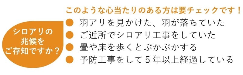 シロアリに関して、心当たりやご心配のある方は、無料にて床下点検も行っておりますので、お気軽にご相談ください。![]()