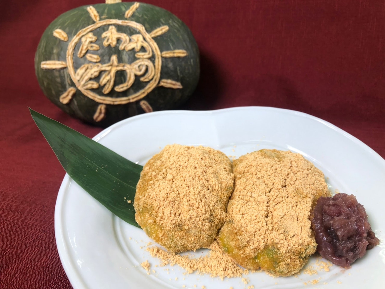 スプーンですくったタネにきな粉をしっかりまぶすと、「かぼちゃのねったぼ」完成です。